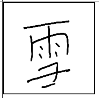 | 雨 | . | . | . | . | . | 비가 와서 기와 골을 따라 아래로 물이 떨어지는 모양 | |