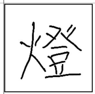 | 燈 | 燈 | 火 | 登 | . | . | . | 등불을 켜고 제사 그릇에 올린 고기를 밝혀서 고기 상태를 확인하는 모습. |