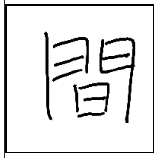 | 間 | 間 | 門 | 日 | . | . | . | 양문 가운데 사이, 간격이 생겨 그 사이로 햇빛이 비치는 모양. 형제간. 간격. |