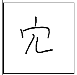 | 宀 | . | . | . | . | . | 용머리가 보이는 집 지붕 모양. | |