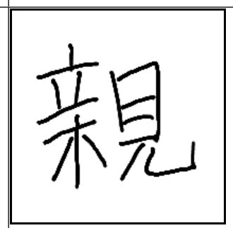 | 親 | 親 | 辛 | 八 | 見 | . | . | 얼굴에 문신한 죄인이라도 팔을 뻗어 만지고 자주 보다 보면 친해진다. 친구. |