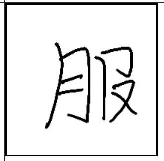 | 服 | 服 | 月 | 卩 | 又 | . | . | 벗은 몸 위에 구부러진 옷을 손으로 잡고 껴입는 모습. 양복. 한복. |