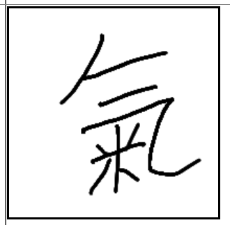 | 氣 | 氣 | 气 | 米 | . | . | . | 솥에 쌀을 넣고 밥을 하면 김, 증기가 힘차게 나오는 모습. 기차. 증기. |