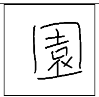 | 園 | 園 | 囗 | 土 | 口 | 衤 | . | 사방이 막혀 있고 흙이 있어 화초가 자라고 옷을 헐렁하게 입고 숨을 쉬는 정원. |
