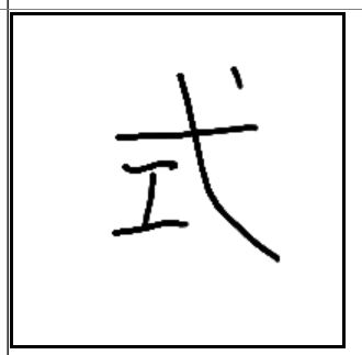 | 式 | 式 | 弋 | 工 | . | . | . | 장인의 법식대로 주살을 설치하는 모습. 방식. |