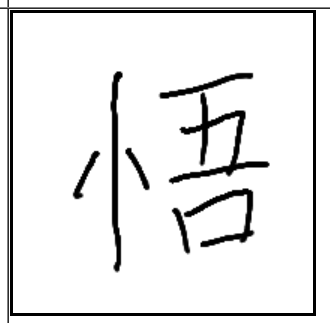 | 悟 | 悟 | 忄 | 吾 | . | . | . | 손가락 다섯을 펴면서 입으로 나는 나다라고 말하면 마음으로 나의 자아에 대해 깨닫게 된다. |