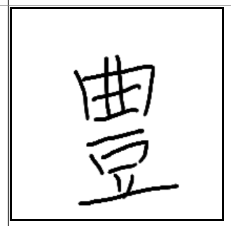 | 豊 | 豊 | 曲 | 豆 | . | . | . | 풍년이 들어 잎이 풍성한 수확물을 제사 그릇에 올린 모양. |