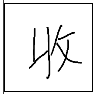 | 收 | 收 | 丩 | 攵 | . | . | . | 벼를 얽어 쥐고 낫으로 쳐 잘라내는 벼 수확 모습. 수확. |