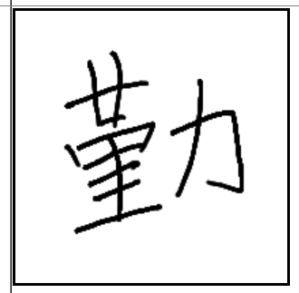 | 勤 | 勤 | 菫 | 力 | . | . | . | 진흙을 만드느라 부지런히 힘을 쓰는 모습. 근면. |