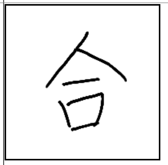 | 合 | 合 | 亼 | 口 | . | . | . | 밥뚜껑과 밥그릇을 합해 놓은 모습. 화합. |