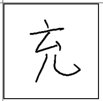 | 充 | 充 | 育 | 川 | . | . | . | 아이 머리가 산도를 꽉 채우고 주위로 양수가 흐르는 모양. 충만. |