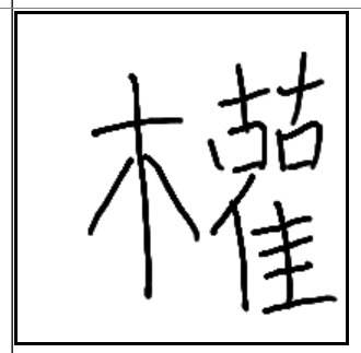 | 權 | 權 | 木 | 雚 | . | . | . | 나무에 앉은 황새가 크악크악 하고 우는 모습이 권세를 부리는 것처럼 보임. 권세. |