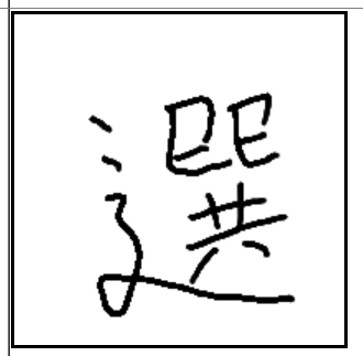 | 選 | 選 | 卩 | 卩 | 共 | 辶 | . | 구부린 두 죄인 중 손으로 한 사람을 선택하여 데리고 가는 모습. 선거. 선택. |