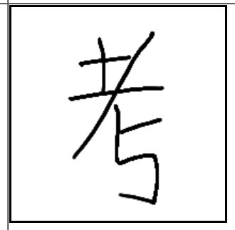 | 考 | 考 | 老 | 丂 | . | . | . | 나이 많은 노인이 일을 실수 없이 공교롭게 처리하려고 많이 생각하는 모습. |