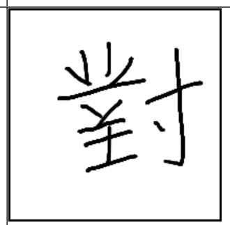 | 對 | 對 | 業 | 寸 | . | . | . | 악공이 자신의 악기를 마주 대하고 손으로 잡는 모양. 대적(對敵) |