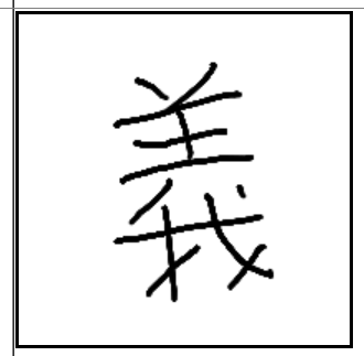 | 義 | 義 | 羊 | 我 | . | . | . | 양을 잡아 제사를 드리고 손에 창을 잡고 의로운 전쟁에 나가는 모양. |
