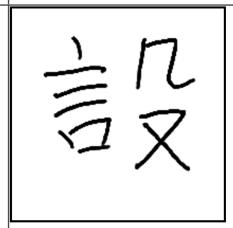 | 設 | 設 | 言 | 殳 | . | . | . | 창으로 성을 점령한 후 부하들에게 말로 지시하여 병사들에게 노획물을 골고루 베풀어 주라고, 나누어 주라고 지시하는 모습. 베푼다. 설명. |