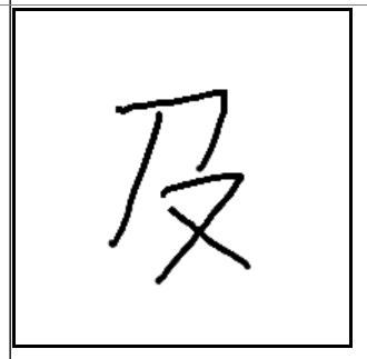 | 及 | 及 | 卩 | 又 | . | . | . | 앞에 가는 사람을 따라가서 그 사람에게 미쳐 손으로 잡는 모습. 과유불급. |