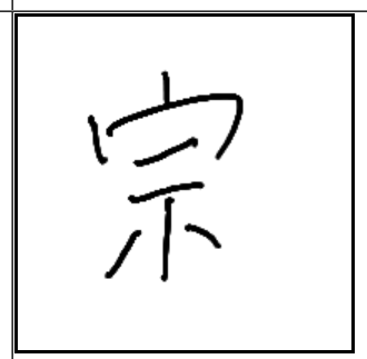 | 宗 | 宗 | 宀 | 示 | . | . | . | 산 마루에 올라 제사 지내는 집을 짓고 제사 그릇에 제물을 담아 제사 지내는 모습. 제사 지내는 곳이 산마루이다. 종교. |