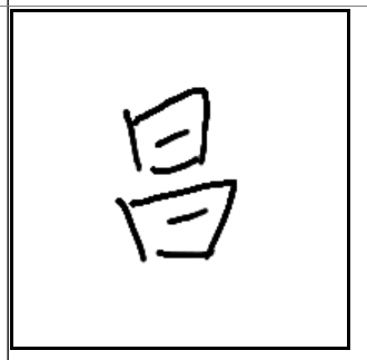 | 昌 | 昌 | 日 | 曰 | . | . | . | 입으로 해의 창성함을 노래하는 모습. |