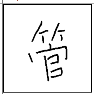 | 管 | 管 | 竹 | 官 | . | . | . | 대나무 속을 파서 집안에서 등뼈를 꼿꼿하게 세우고 앉아있는 관리처럼 꼿꼿한 대롱을 만든 모양. 관로. |