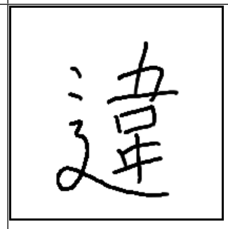 | 違 | 違 | 韋 | 辶 | . | . | . | 장군이 있는 가죽 군막을 둘러가지 않고 가로질러 가는 모습. 위반하는 모습. |