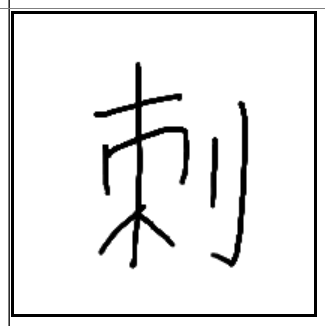 | 刺 | 刺 | 朿 | 刂 | . | . | . | 나무의 가시가 칼날처럼 피부를 찌르는 모양. 자상. |