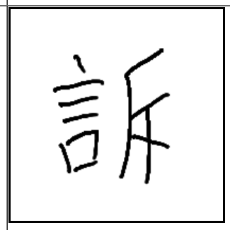 | 訴 | 訴 | 言 | 斥 | . | . | . | 말로 도끼를 들고 약탈하는 오랑캐를 물리쳐 달라고 호소하는 모습. 상소. |