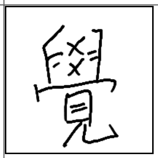 | 覺 | 覺 | 學 | 見 | . | . | . | 손에 산가지를 들고 셈하는 것을 아들에게 가르쳐 주면 아들은 그것을 보고 셈하는 법을 깨닫는다. 각성 |
