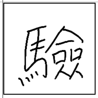 | 驗 | 驗 | 馬 | 僉 | . | . | . | 말에 대해 삼합집 사람들이 한 마디 씩 하면서 시험하는 모습. 시험. |