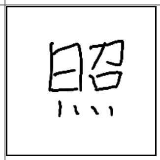 | 照 | 照 | 日 | 召 | 灬 | . | . | 해가 부른 듯 와서 비치면 해가 숯불처럼 주위를 빛으로 비춘다. 조명. |