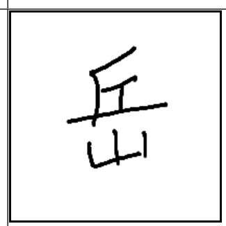 | 큰산악 | 큰산악, 언덕구, 뫼산, ., ., ., 언덕도 있고 산도 있는 아주 큰 산. 관악산.언덕구, 도끼근, 한일, ., ., ., 도끼날 처럼 위로 솟은 언덕. 구릉.뫼산, ., ., ., ., ., 산 봉우리가 세 개인 높은 산.., ., ., ., ., ., .., ., ., ., ., ., .., ., ., ., ., ., . | ||||||