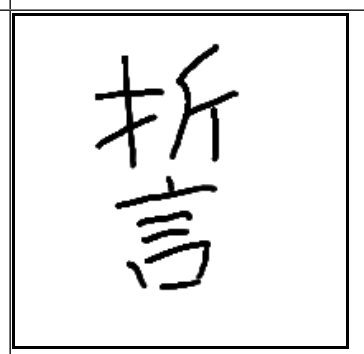 | 誓 | 誓 | 折 | 言 | . | . | . | 손에 도끼를 들고 나무를 단박에 꺽듯 말을 딱 잘라 말하며 무언가 지키겠다고 서약하는 모습. |