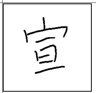 | 宣 | 宣 | 宀 | 一 | 旦 | . | . | 아침이 되면 집지붕에 햇빛이 베풀어 지는 모습. 선교. |