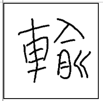 | 輸 | 輸 | 車 | 兪 | . | . | . | 수레에 있는 물건을 배로 옮겨 싣고 물길을 따라 흘려 보내는 모습. 수송. |