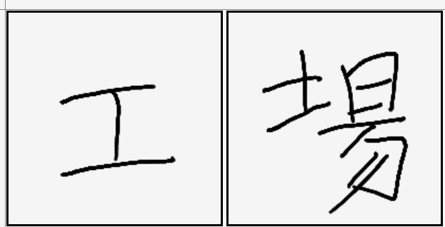 | 工場 | 工場 | 工 | 場 | . | . | . | 장인들이 모여있는 장소를 공장이라고 함. |