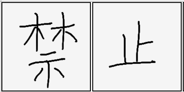 | 禁止 | 禁止 | 禁 | 止 | . | . | . | 제사 지내는 숲에 못들어가게 금한다. 금하고 그치는 것을 금지라고 함. |