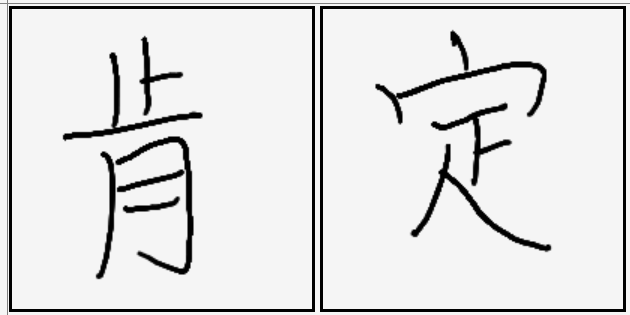 | 肯定 | 肯定 | 肯 | 定 | . | . | . | 다리에 찰싹 붙어 있는 살처럼 수긍한다. 무언가 정한다. 마음이 수긍하는 방향으로 정하는 것을 수긍이라고 함. |