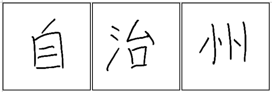 | 自治州 | 自治州 | 自 | 治 | 州 | . | . | 스스로 다스리는 마을을 자치주라고 함 |