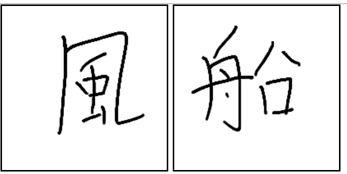 | 風 | 凡 | 虫 | . | . | . | 바람이 불면 범선의 돛이 바람에 부풀고 벌레가 날리는 모양. | |