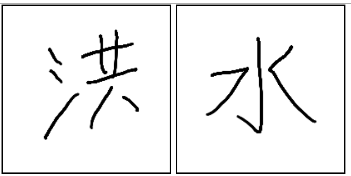 | 홍수 | 홍수, 넓을홍, 물수, ., ., ., 물이 넓게 퍼지는 것을 홍수라고 함.넓을홍, 물수변, 함께공, ., ., ., 물에 손을 담그면 손이 더 넓어 보인다. 클태와 같은 글자 구성 (泰). 홍어.물수, ., ., ., ., ., 지류의 물이 본류로 흘러들어와 시내를 이루는 모양., ., ., ., ., ., .., ., ., ., ., ., .., ., ., ., ., ., . | ||||||