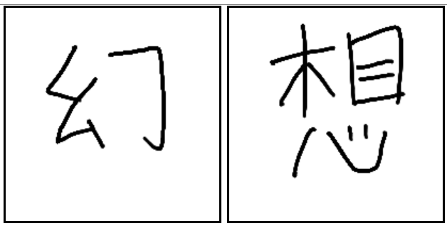 | 幻想 | 幻想 | 幻 | 想 | . | . | . | 실타래처럼 고무래처럼 헛것이 보이고 생각으로 상상하는 것을 합쳐서 환상. |