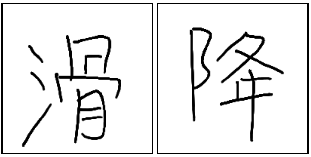 | 滑降 | 滑降 | 滑 | 降 | . | . | . | 미끄러져서 내려가는 것을 활강이라고 함. |