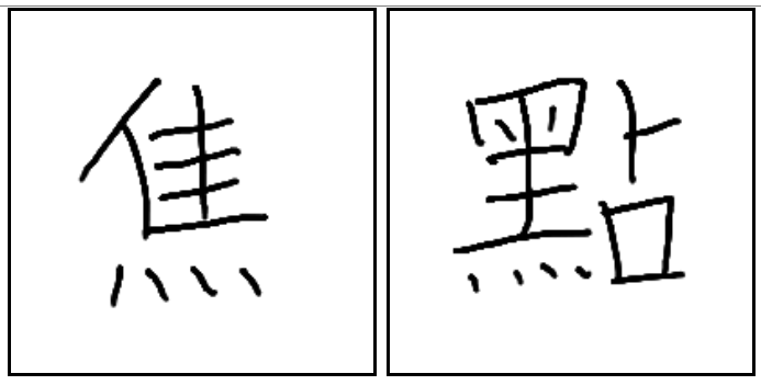 | 초점 | 초점, 탈초, 점점, ., ., ., 볼록렌즈의 촛점을 맞추면 종이가 타는 현상.탈초, 새추, 불화발, ., ., ., 새가 불에 타서 안타깝다. 노심초사 勞心焦思점점, 검을흑, 차지할점, ., ., ., 검은 한 점에서 시작해서 계속 타들어 가는 소뼈점 치는 모습. 소실점.., ., ., ., ., ., .., ., ., ., ., ., .., ., ., ., ., ., . | ||||||